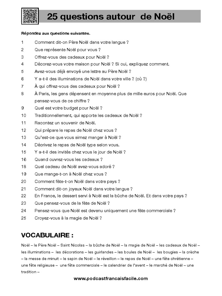 Christmas Holiday best time for the whole people in the world because thats the last holiday before new year. This year Christmas may fell different because of Covid Virus family maybe can't see each other. Hope this Question sur la fete de noel, can make you feel warm and full of joy. Hope for the brighter future ahead. Don't forget to click play Christmas video below.
